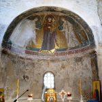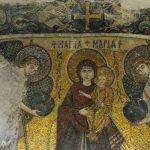 К сожалению, самая ранняя церковь, которая была украшена мозаикой, не сохранилась. До наших дней дошла только алтарная аспида. В своде этой аспиды можно увидеть редчайшую мозаику VI века. На мозаике изображена Богородица в полный рост, держащая на руках Младенца. Мозаика относится к доиконоборческому периоду. Картина исполнена строгости, простоты и изящества. Мозаика из Ангелоктисти обладает уникальным и давно утраченным качеством ясности иконографического замысла. Позднее этот тип иконографии, где Мария правой рукой указывает на Христа, получил название “Одигитрия” или “Путеводительница”.